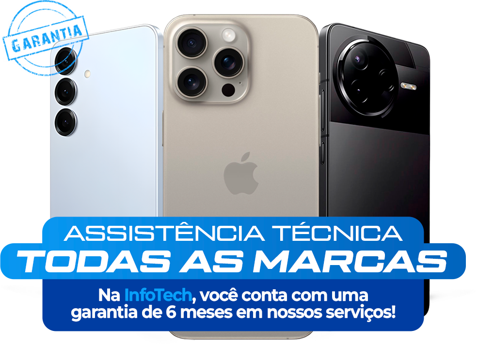 Na InfoTech, você encontra assistência técnica especializada, acessórios de qualidade e aparelhos novos das melhores marcas — tudo com atendimento ágil, confiança de quem entende de tecnologia e pagamento facilitado em até 36x no crediário.